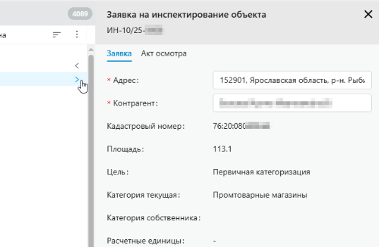 Чтобы посмотреть заявку и акт осмотра объекта, нажмите на нужную заявку в списке.