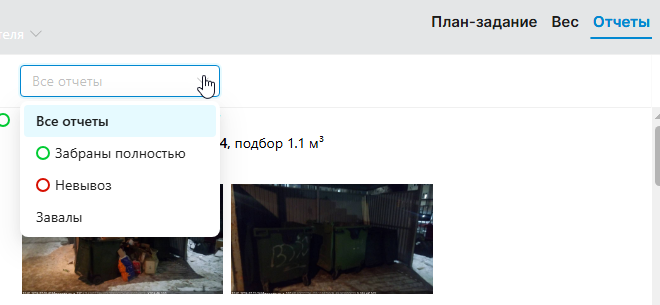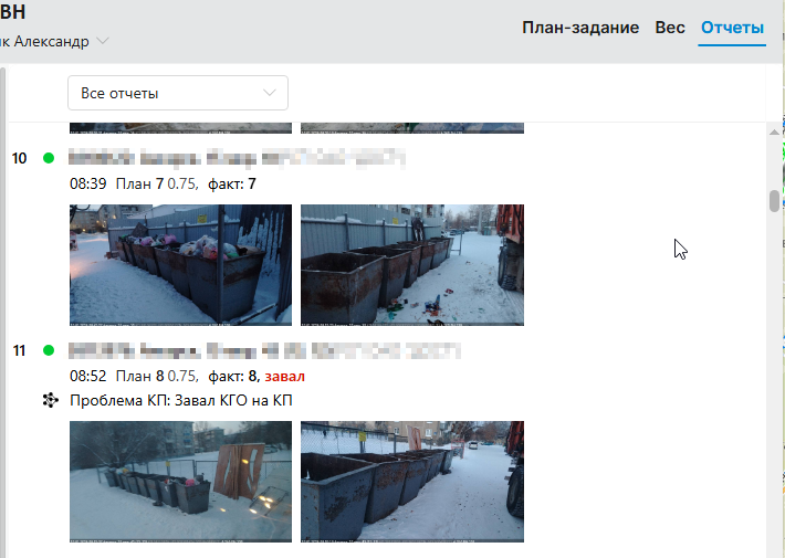 Завалы - только отчеты, где был отмечен завал ТКО/КГО