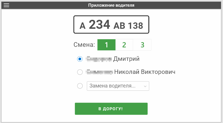 Приложение получает план-задание и отправляет отчеты от имени смены, а не просто от номера ТС.