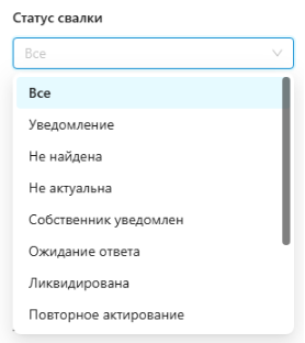 Для удобства поиска можно применить нужный фильтр “Статуса свалки”