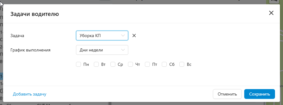 - Выбрать тип задачи, который нужно закрепить за КП, выбрать график задачи