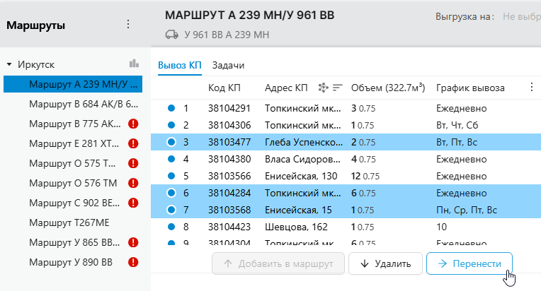 Функция переноса КП используется, как инструмент редактирования созданных маршрутов.