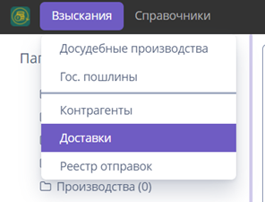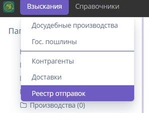 Находятся во Взысканиях – Доставки; Реестр отправок.