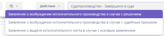 - Нажимаем "Создать" - "Исполнительное производство", оно создастся если требования удовлетворены в суде;
