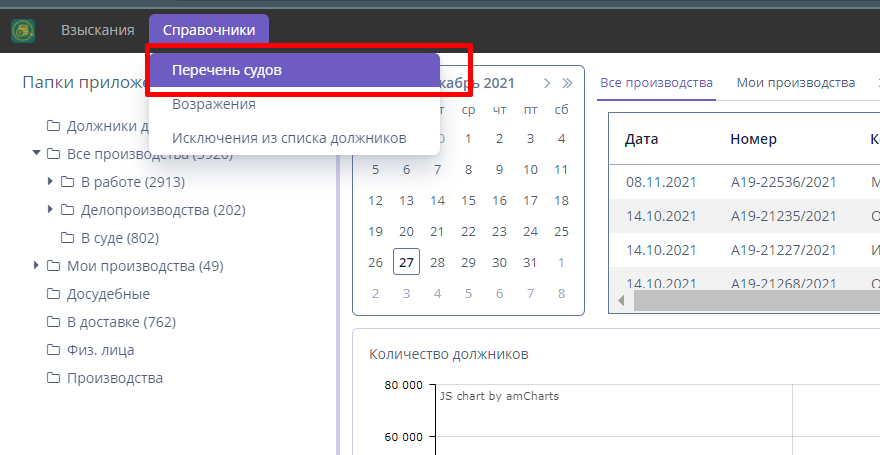 🏠Работа с жилымиСправочникиПеречень судовПеречень судовНажимаем «Справочники» - «Перечень судов»;Ищем с помощью фильтра нужный;Нажимаем «Просмотр».