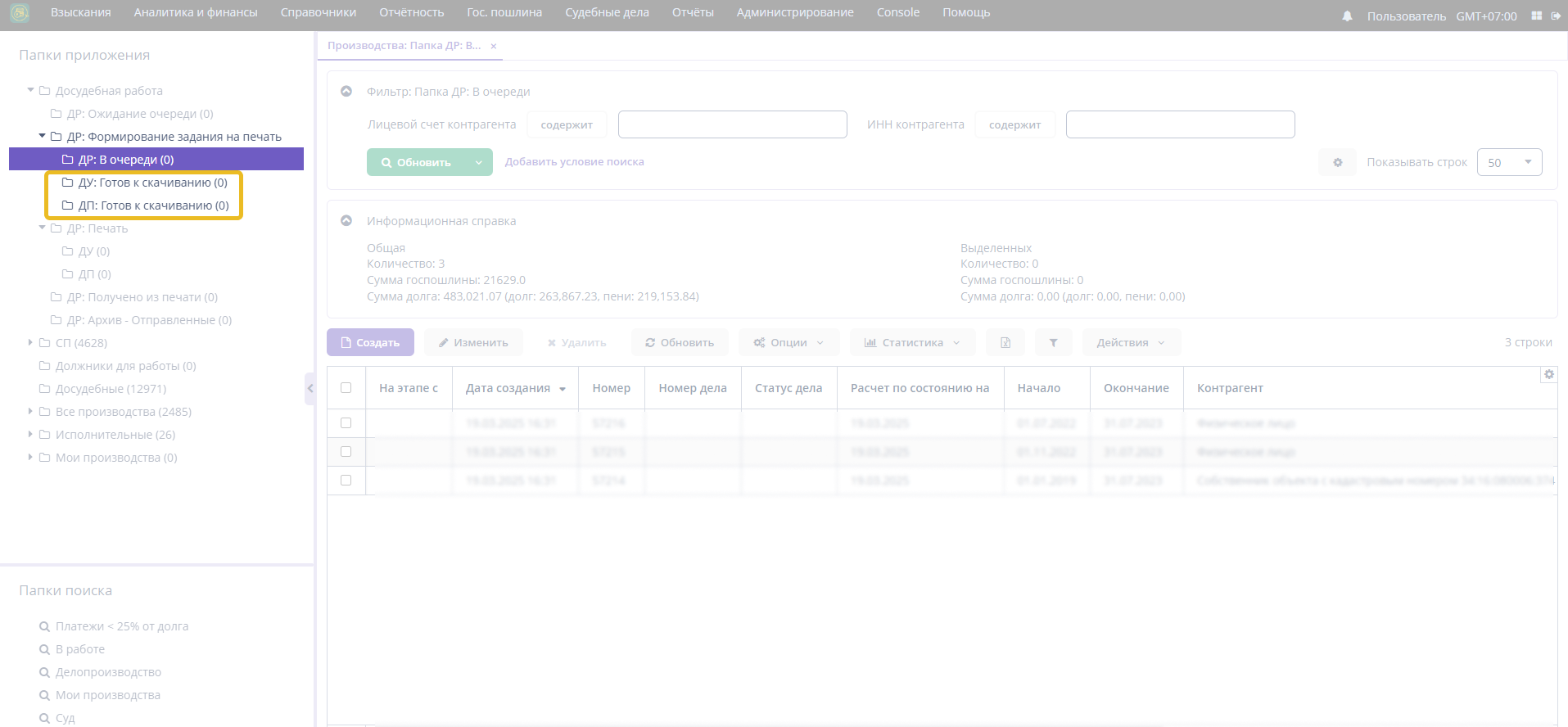 После окончания генерации производство перейдет в следующую подпапку, в зависимости от вида досудебной работы: