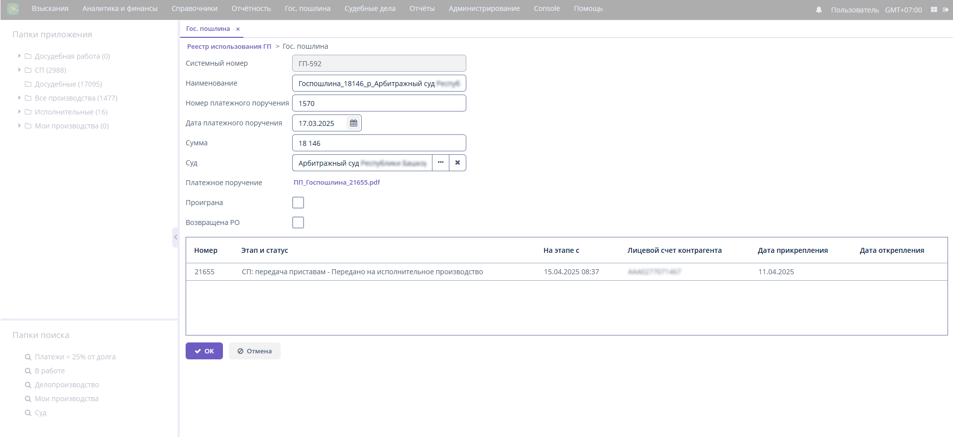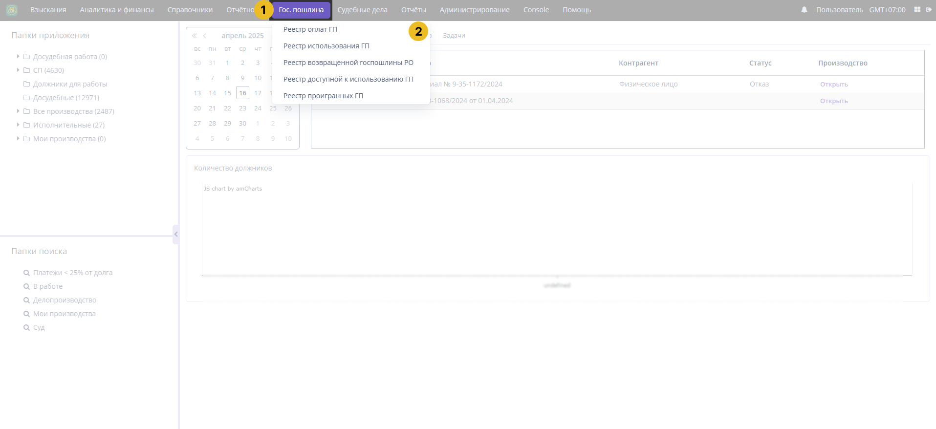 Реестр оплат ГП - госпошлины, которые ожидают оплату.