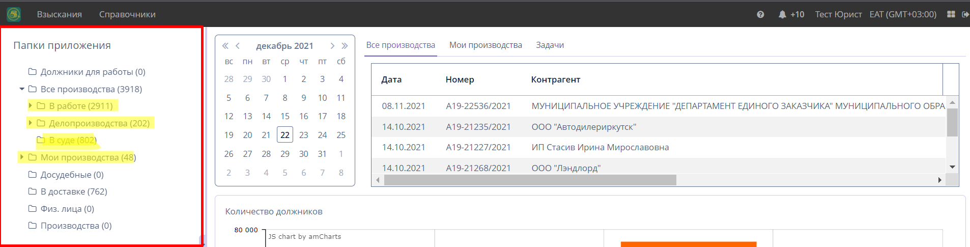 - Готовы в суд (производства, которые подготовлены к отправке в суд)