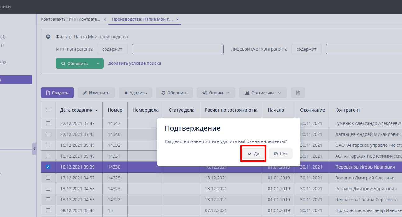 Выбираем контрагента из списка, нажимаем один раз левой кнопкой мыши, нажимаем «Удалить»