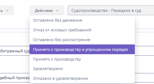 В карточке производства нажимаем "действие", предлагается то, что можно сделать с данным производством.