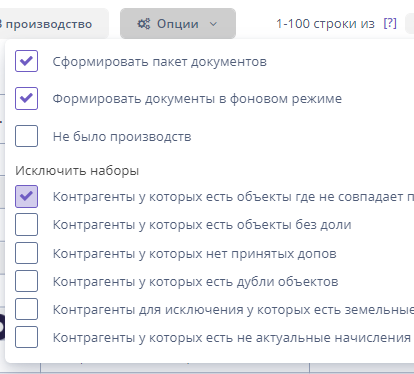 - Формировать документы в фоновом режиме - Формирует документы, когда вы нажимаете "создать производство";