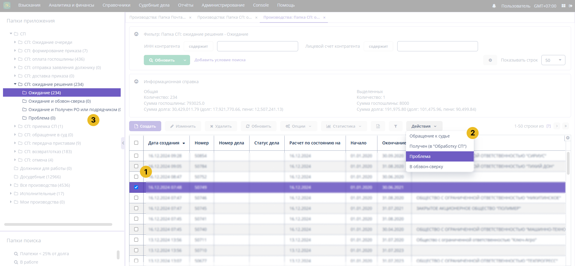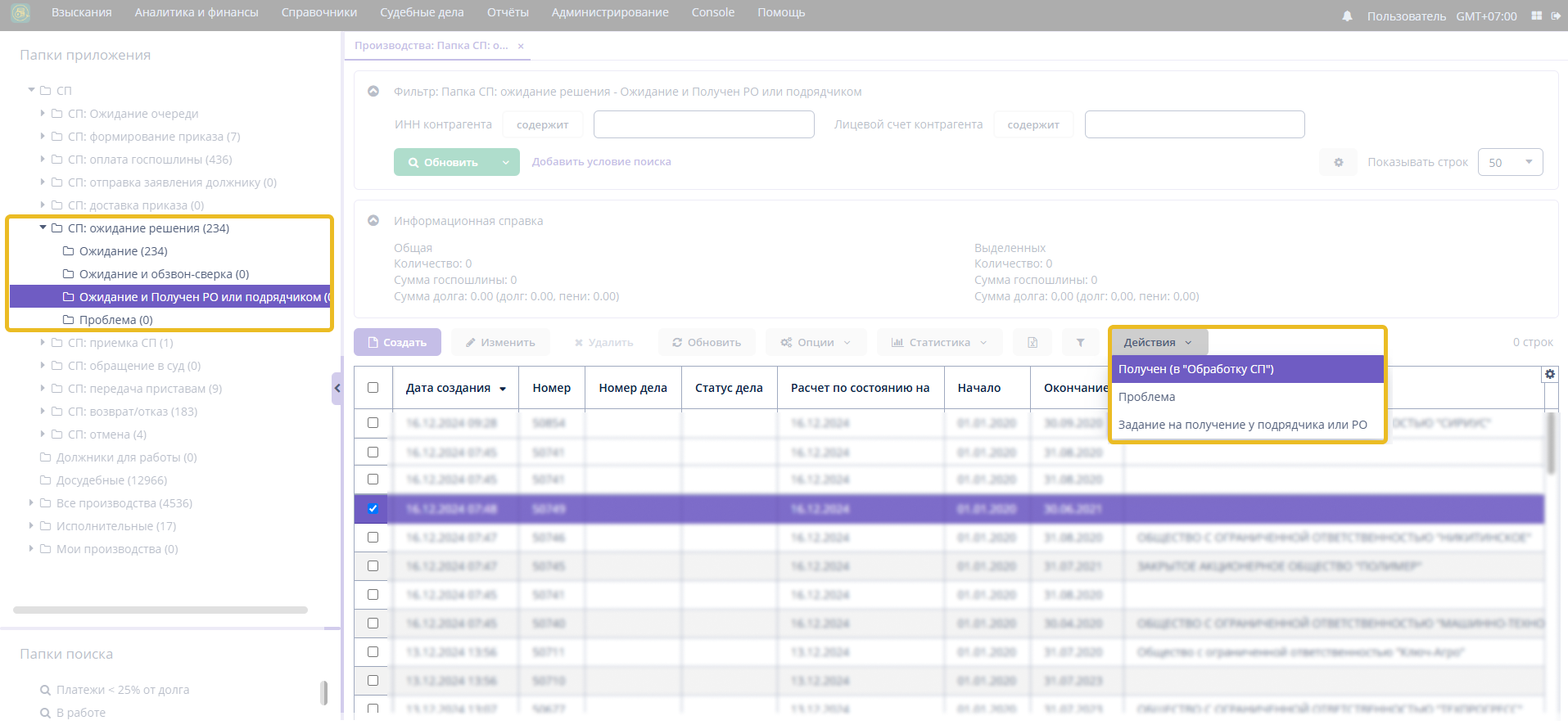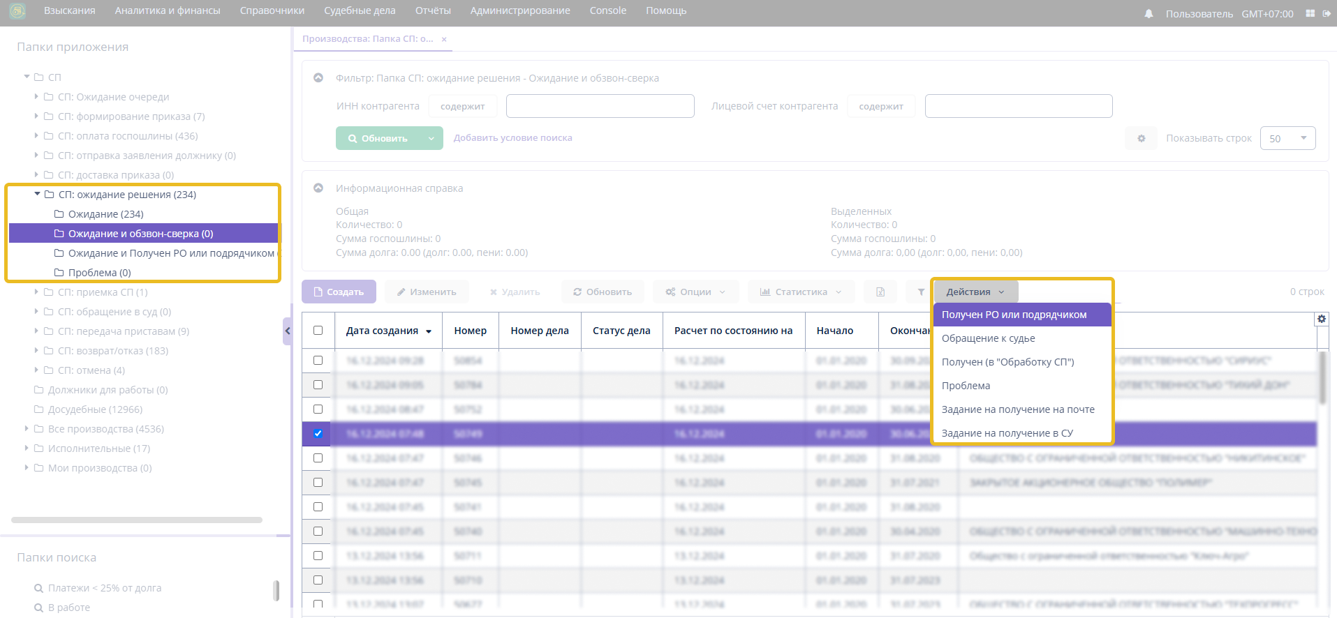 - Производства перейдут в папку “СП: обращение в суд” и подпапку "Обращение к судье".