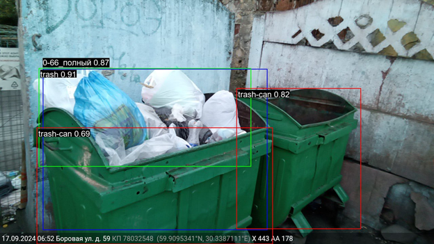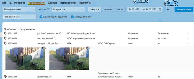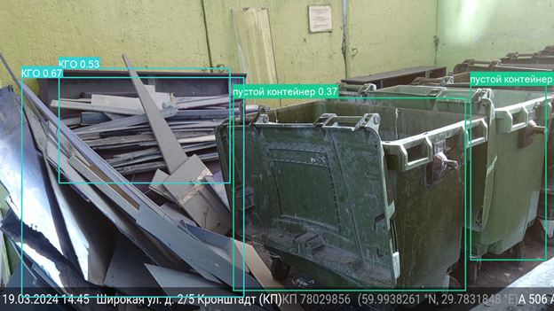 Нейросеть ПО Чистая логистика анализирует фотографии, сделанные водителями мусоровозов при вывозе контейнерных площадок в мобильном приложении Чистой логистики, на предмет следующих проблем: