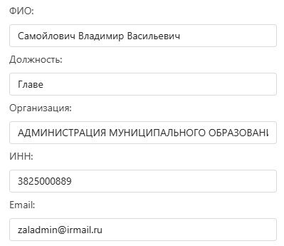 Если в реестре КП у площадки был указан контакт для уведомлений, его данные будут подставлены в форму автоматичесски. Если нет, введите данные вручную.