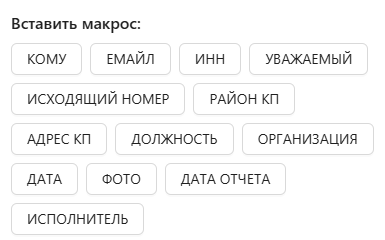 Изменяемые части в тексте замените на макросы. Их значения будут подставлены при создании нового письма из данного шаблона. При этом макросы "КОМУ" и "УВАЖАЕМЫЙ" автоматически поставят ФИО контакта в нужный падеж и род.