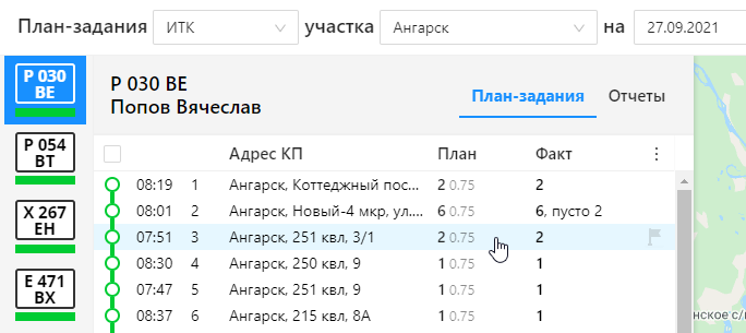 Нажмите на строку КП в план-задании, чтобы увидеть отчет по ней.
