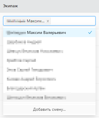 Когда смен более одной в списке выбора водителей экипажа появляется пункт "Удалить смену".