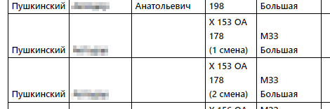 В отчетах по факту, сводном и транспорту смены представлены отдельно, порядковый номер добавляется к госномеру ТС в скобках