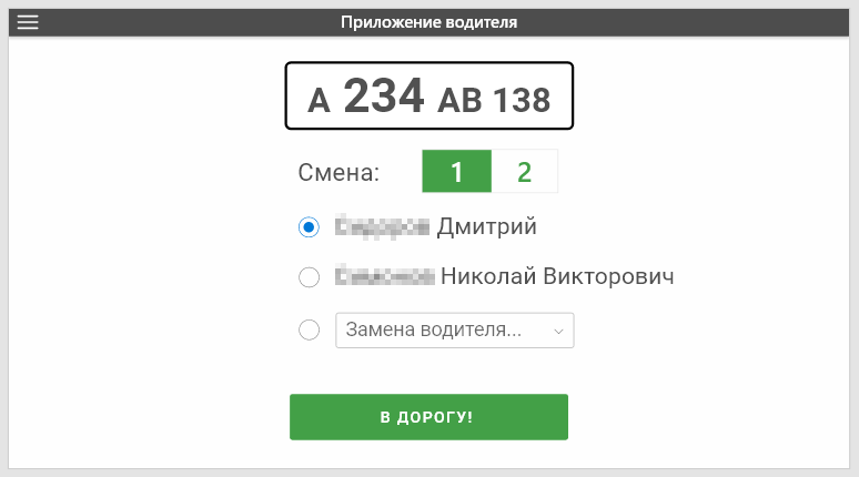 Приложение получает план-задание и отправляет отчеты от имени смены, а не просто от номера ТС.