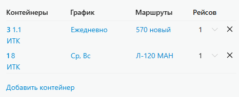 - перевозчик указывается, только если разные контейнеры на площадке вывозятся разными перевозчиками
