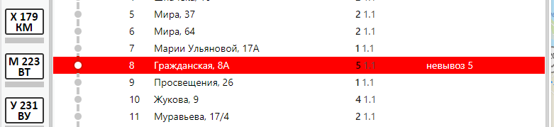 Отмеченные этой меткой КП в ПЗ мониторинга, если произошел невывоз по такой КП, выделяются красным.