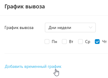 Чтобы добавить или удалить временный график у КП, откройте диалог редактирования графика вывоза и нажмите "Добавить временный график".