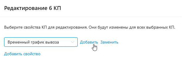 Можно также изменить или добавить временный график у нескольких КП в диалоге массового редактирования.