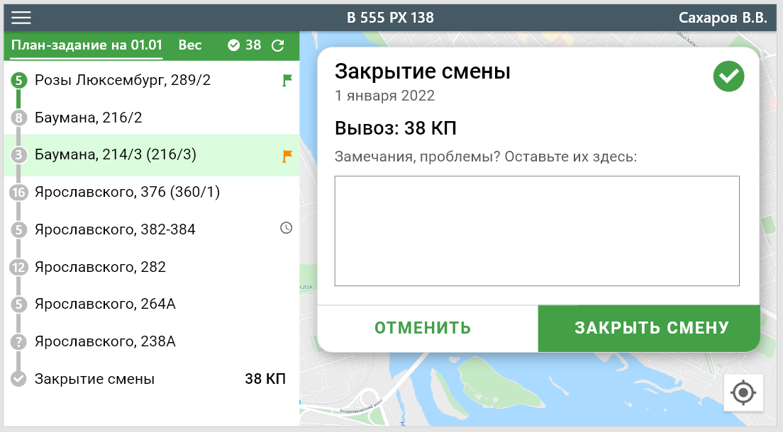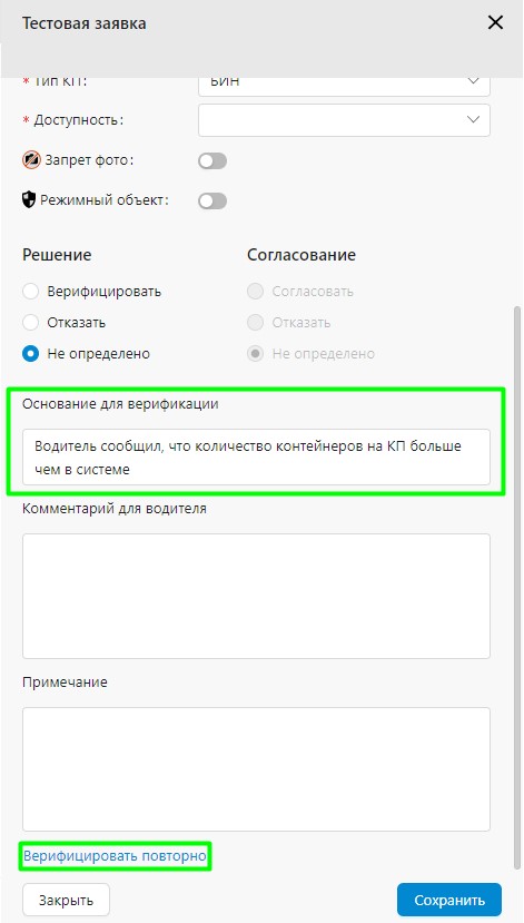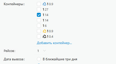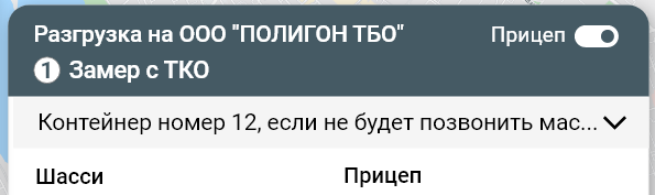 - Водитель выбрал причину невывоза "Не выкатили контейнер"
