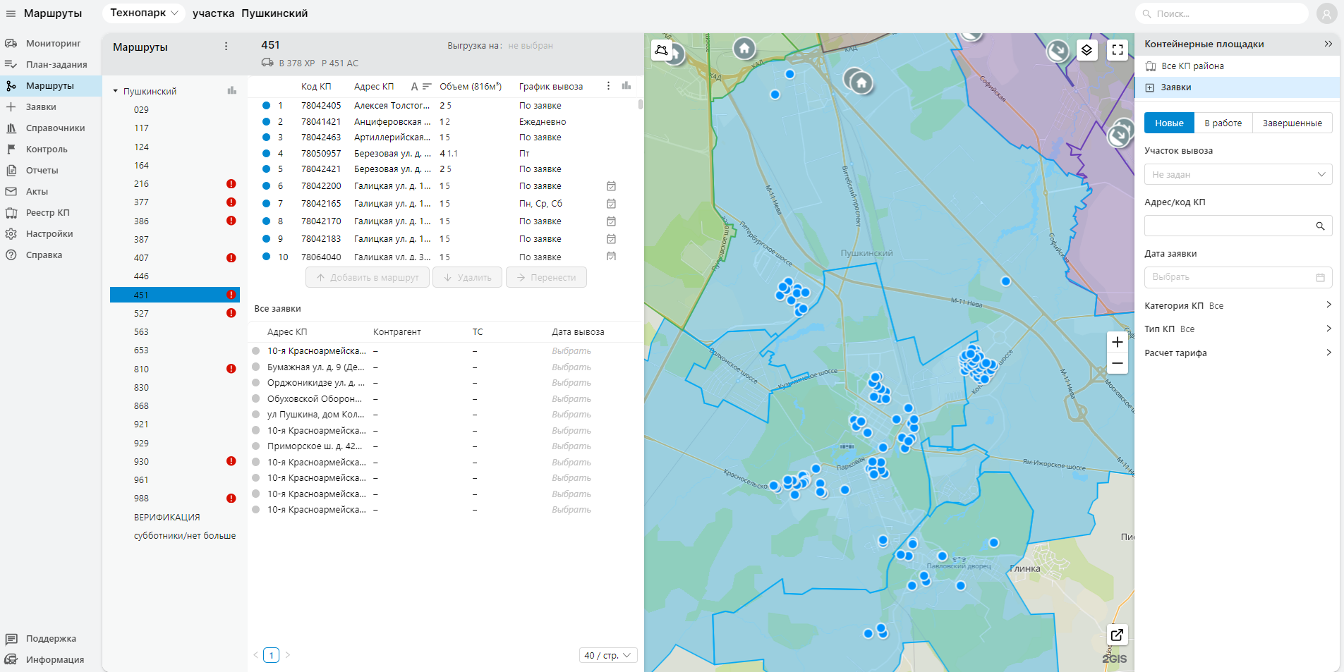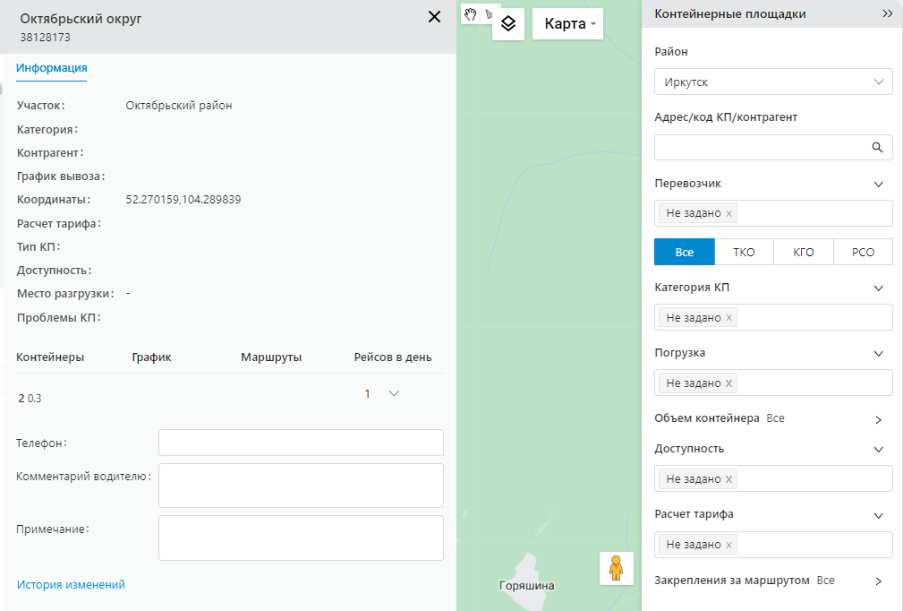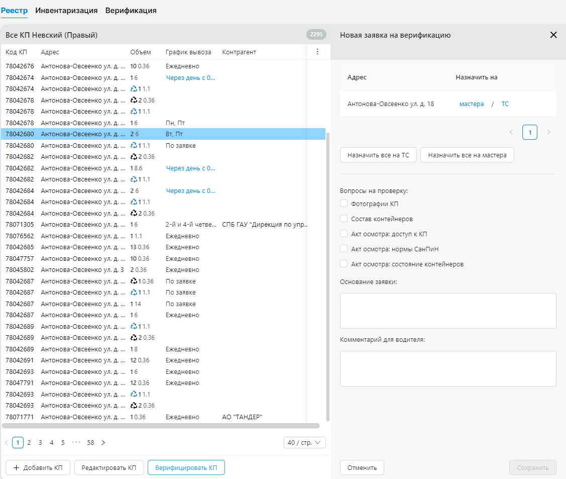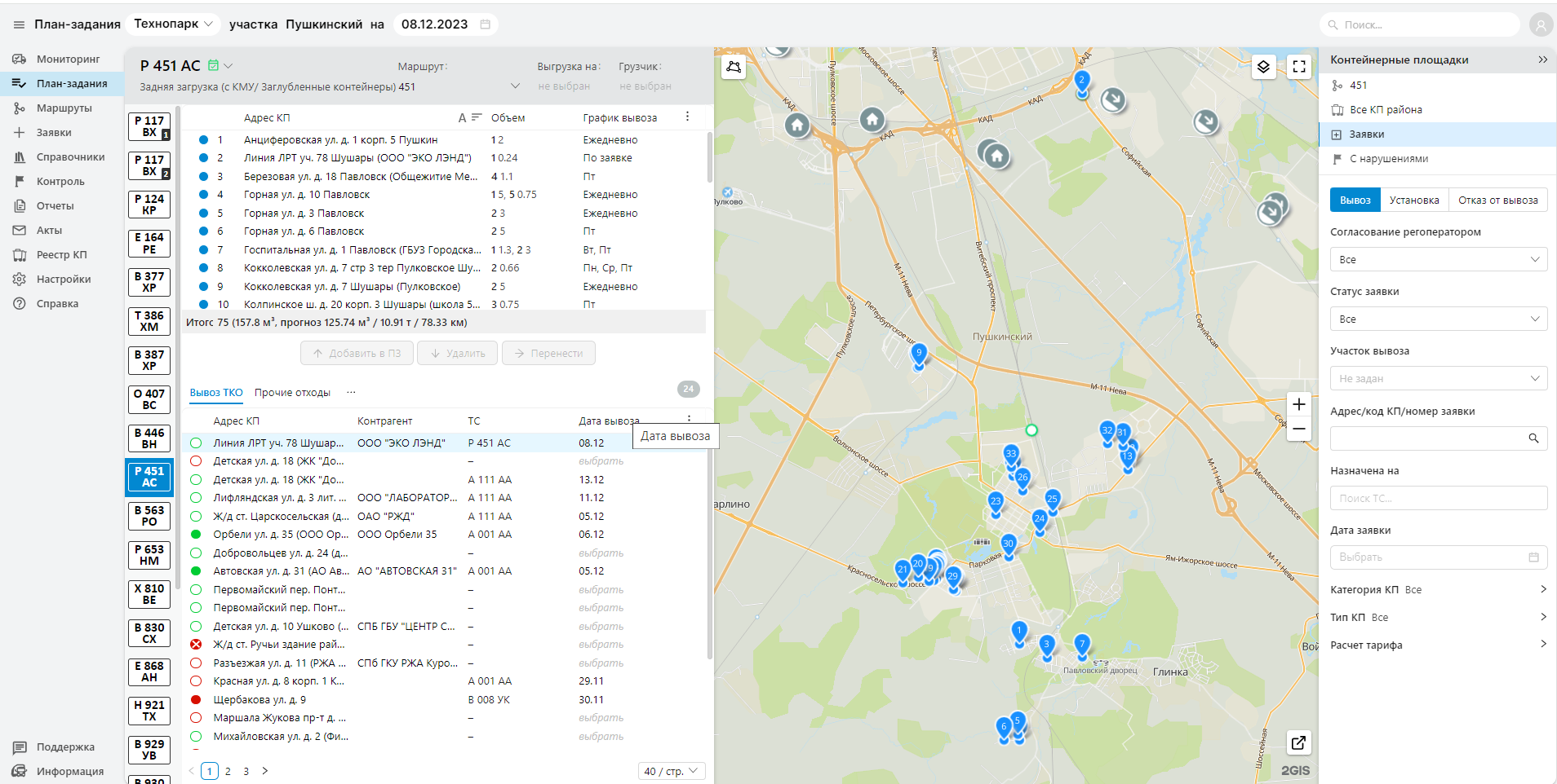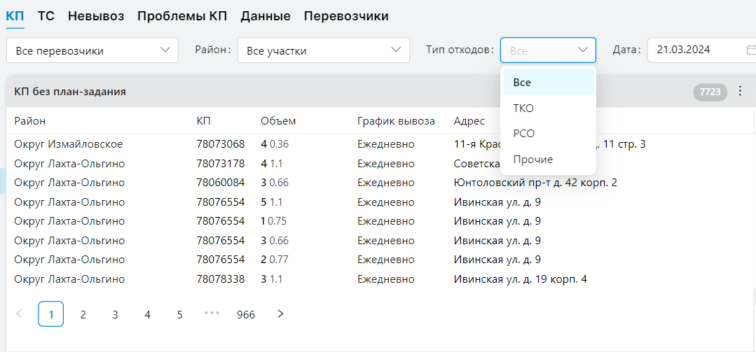 - в разделе "С нарушениями" редактора ПЗ на вкладке "Невывоз" столбец с объемом контейнеров заменен на причину невывоза КП.