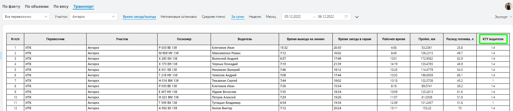 КТУ водителя добавлен в отчет по транспорту о въезде-выезде ТС.