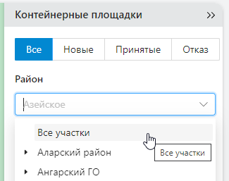 - для фильтрации по всем районам в разделе "Верификация" добавлен фильтр "Все"