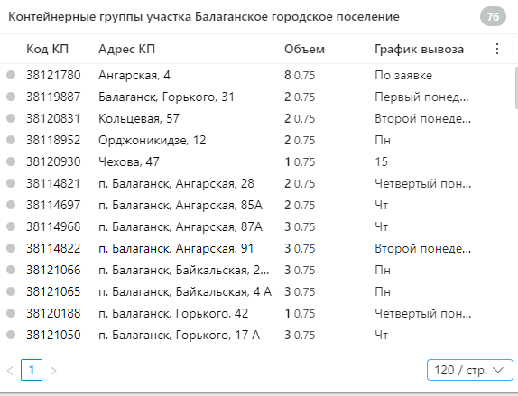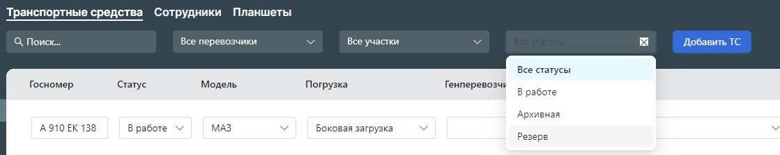 - Если выбрано "В ПЗ", заголовок = "ТС" и в нем показываются госномера ТС, в которых находится та или иная контейнерная группа