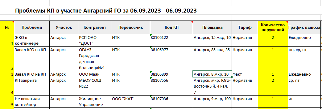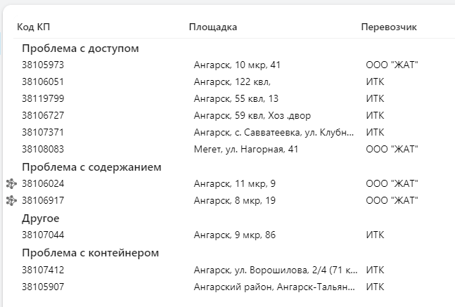 - изменена логика учета проблемы от водителя "не выкат контейнеров"