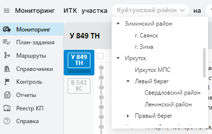 При этом ПЗ будет перемещено в указанный участок как в Мониторинге, так и в редакторе ПЗ. И перемещение ПЗ этого ТС будет действовать только один день, на другой день ТС вернется в старый участок
