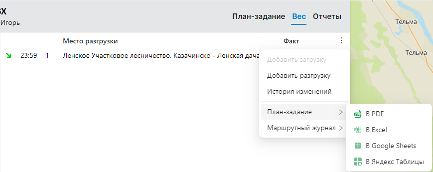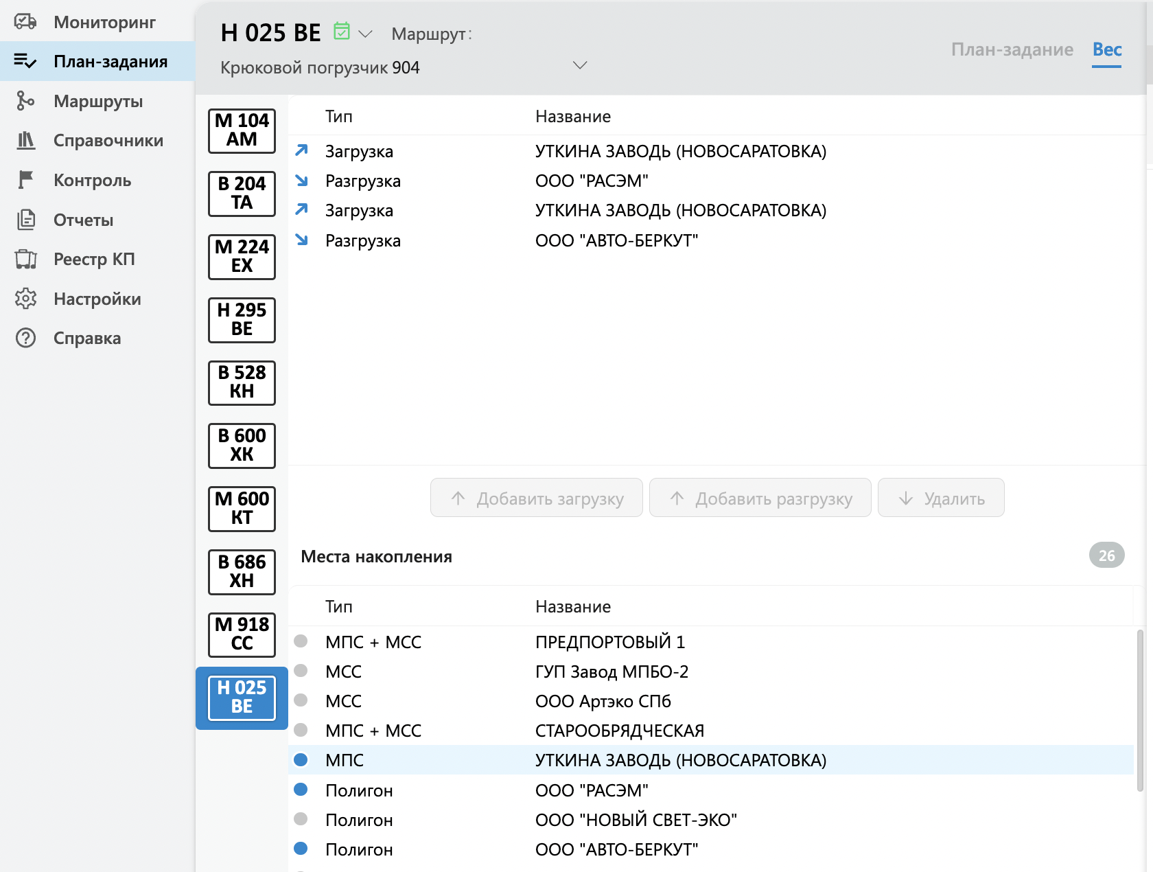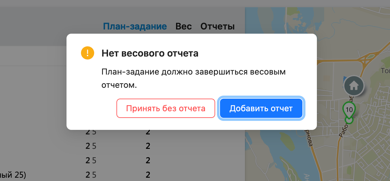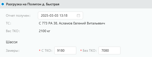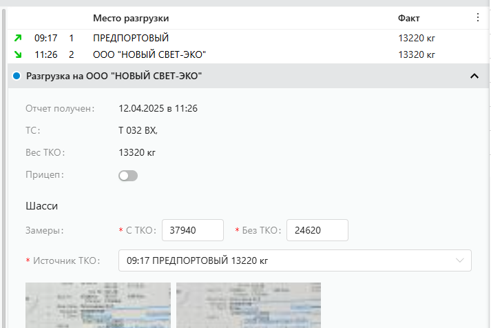 - Весовой отчет скорректируется при изменении веса разгрузки в мониторинге