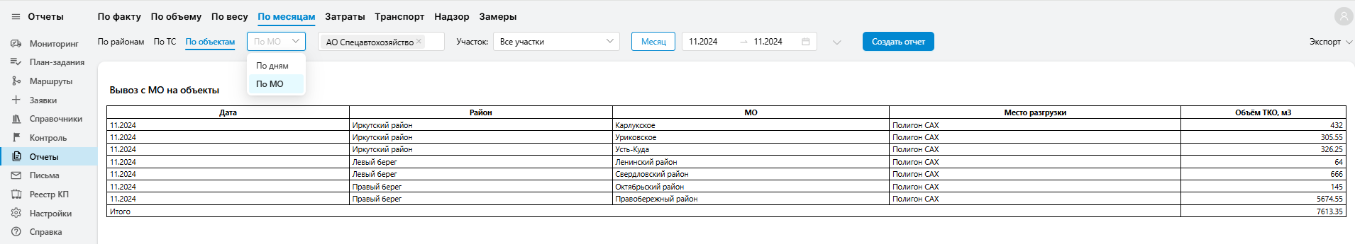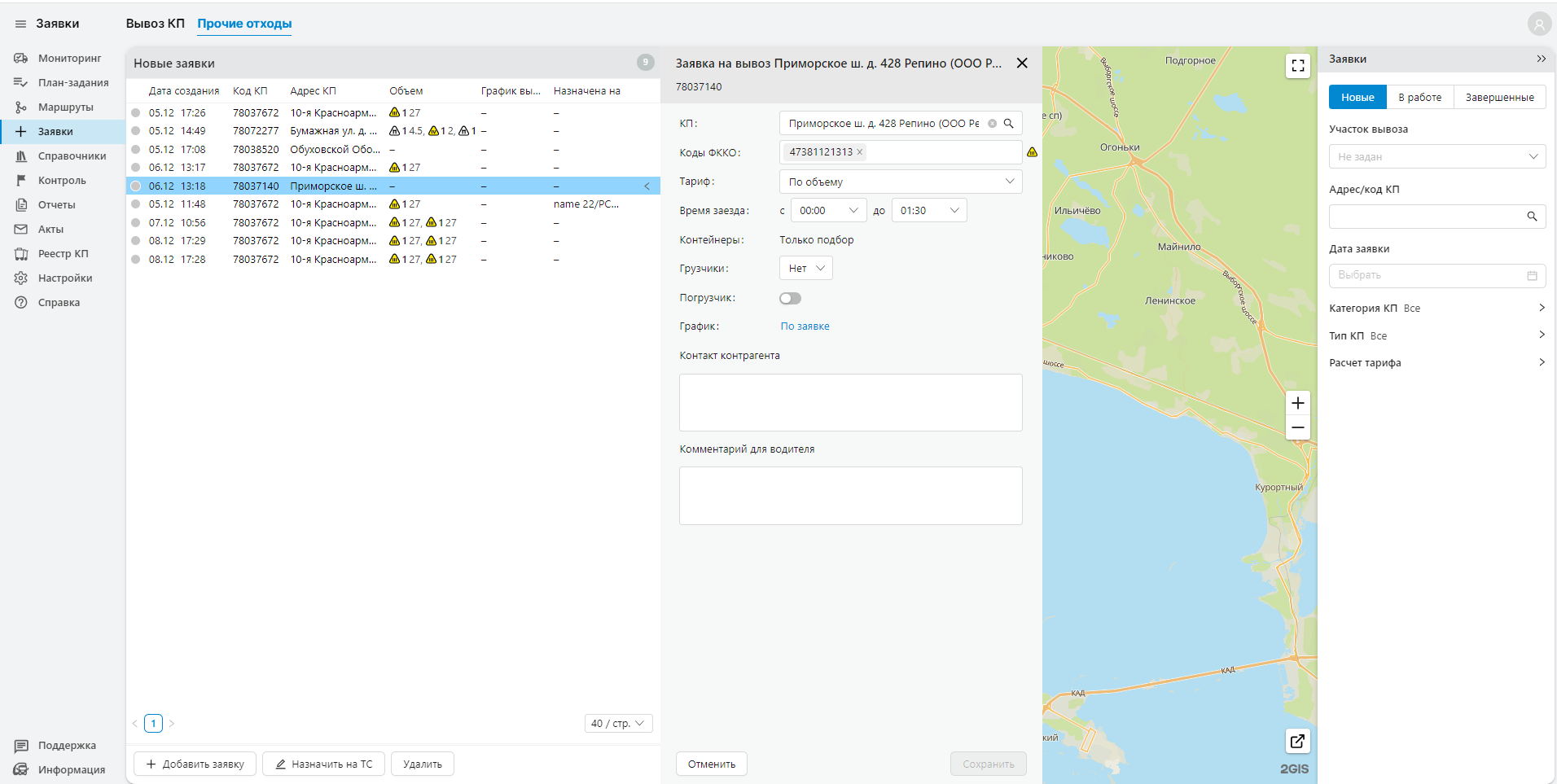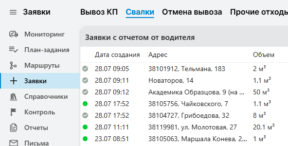 Объемы вывоза прочих отходов по заявкам учитываются в отчете по объемам отдельно от ТКО