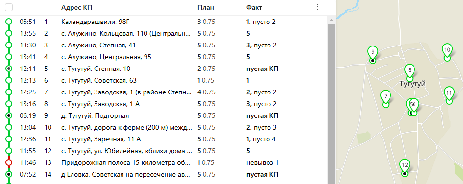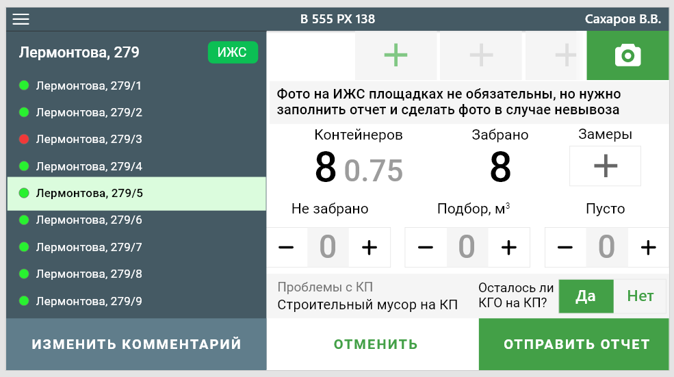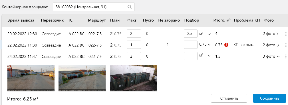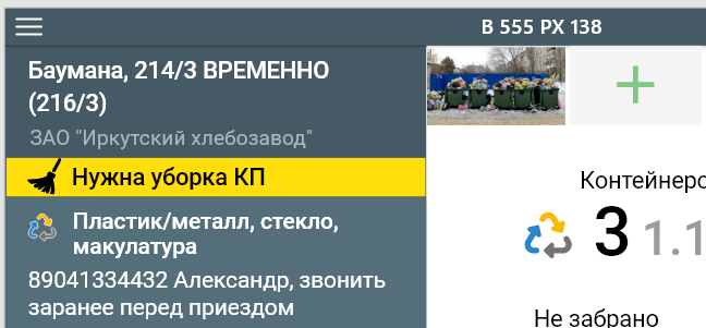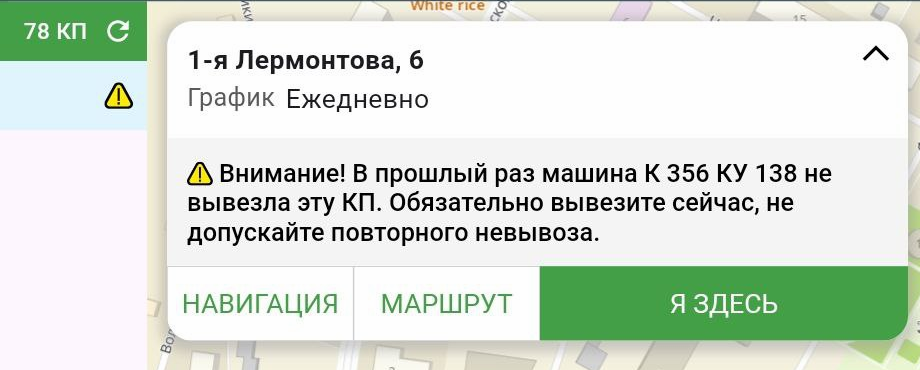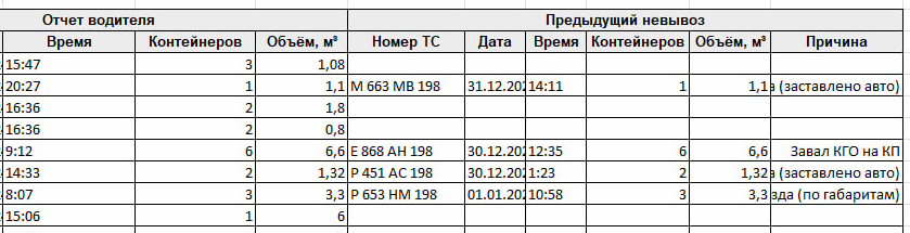 - Водитель отметил частичный невывоз (хотя бы один контейнер был отмечен вывозом)