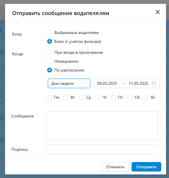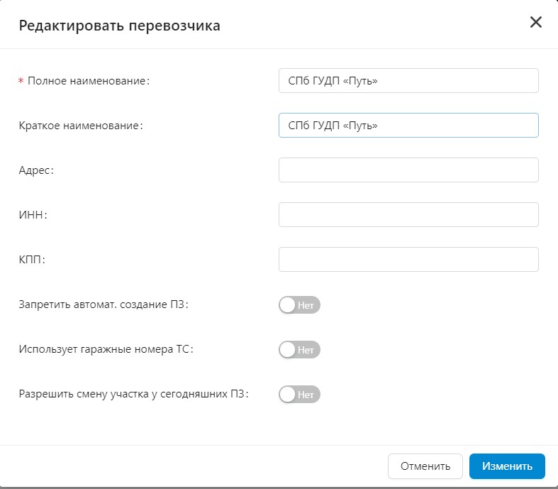 При невыполнении данного условия, перевозчик не сможет открывать свои ПЗ в мониторинге и в мобильном приложении водителя
