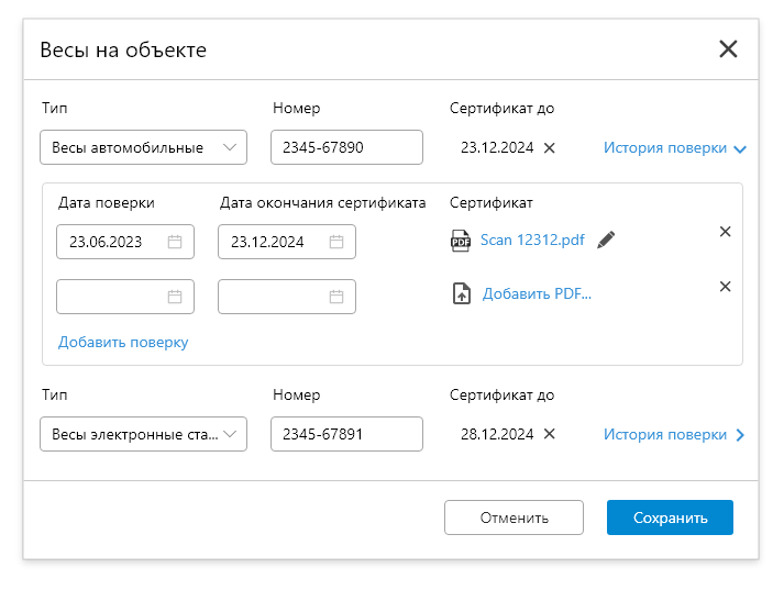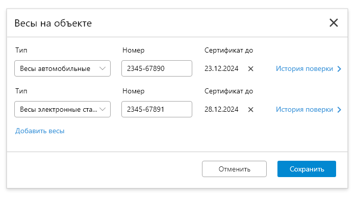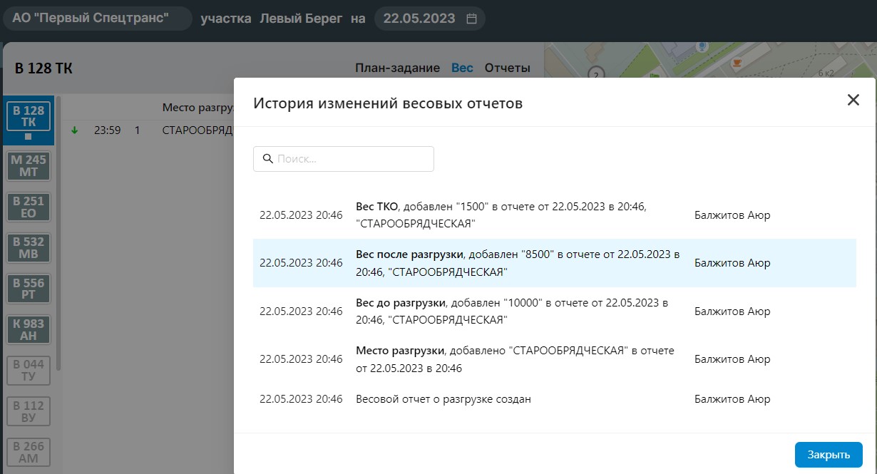 Также добавлена возможность посмотреть историю изменений по каждому весовому отчету