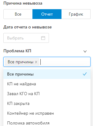 Добавлен фильтр "Проблема КП" для причины невывоза "Отчет".