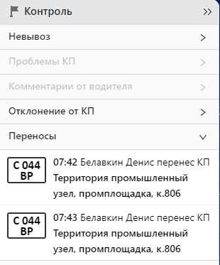 В раздел Контроль, в фильтр отчета по проблемам КП добавлена возможность поиска невывозов