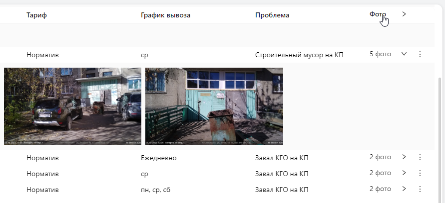 - Фотографии показываются аналогично Мониторингу, при клике на ссылку "2 фото".