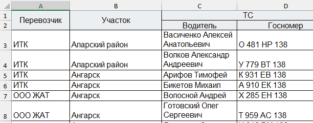 Расчет с перевозчиками "отдельно по каждой ТС"