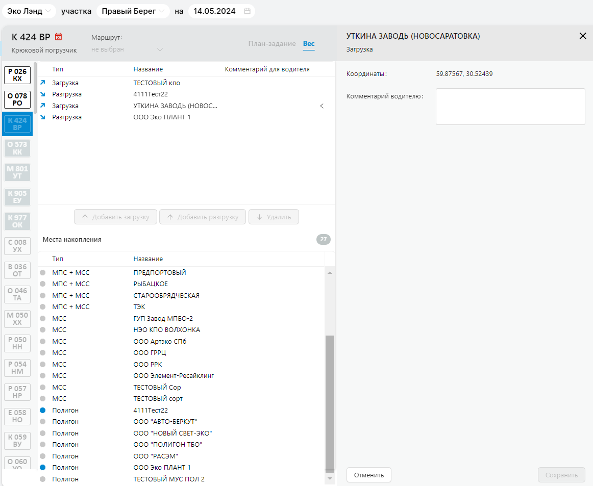 В разделе Редактор ПЗ добавлена возможность редактировать участок ПЗ у указанного ТС за указанный день