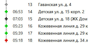 - Красный - КГ не входит ни в одно ПЗ на выбранный день