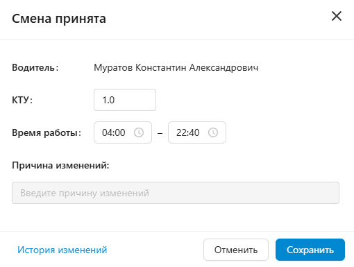 В разделе мониторинг теперь отображается коэффициент трудового участия водителя, выполнившего ПЗ. После принятия мастером смены КТУ водителя отображается в строке состояния.