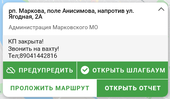 В файл экспорта реестра КП добавлены ее контакты: номер телефона для уведомлений, номер телефона шлагбаума, имя ТГ чата для уведомлений, тип сообщения для ТГ чата