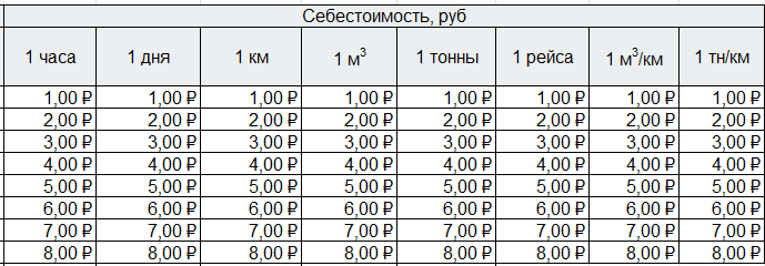 - Его пробег за месяц умножается на ее тоннаж за месяц