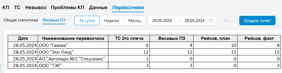 - Частичный невывоз - КП попадает в отчет, даже если не вывезен один контейнер