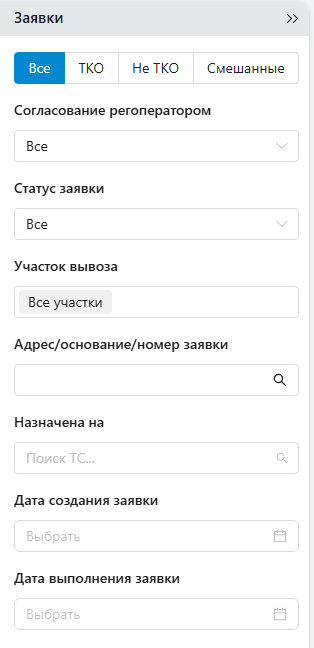 - ТКО - показывает заявки, на вывоз свалок с ТКО отходами